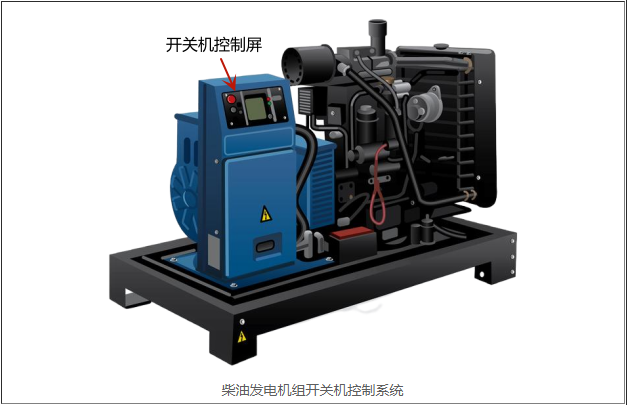 (3)柴油发电机配有运行模式发电机组控制板触屏开关,有四个功能键,即“全自动”、“手动式”、“运行”、“终止”。