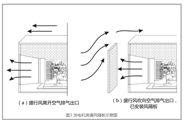 (2)冷却空气务必取自户外,其气温尽量低,引出风口(及导风罩)依据发电机房间内具体地址布局。