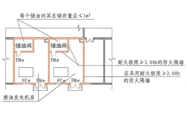 (2)机房内应设储油间,其总储藏量不得超过1m³,并要采取相应消防安全措施;