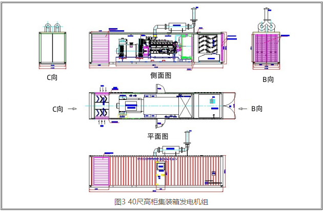 方仓式发电机队的外型如下图3所显示。方仓式发电机组是把整机标准型发电机组安装于方舱里,是专门针对郊外建设工程施工供电系统而加工制造的发电机组,发电机组输出功率一般在300kW之上。